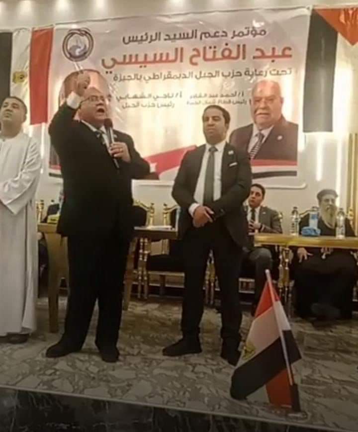 واستهل ناجي الشهابي رئيس حزب الجيل الديمقراطي كلمته المهمة بتوجيه التحية للدكتور أحمد عبد القادر ئيس قطاع حزب الجيل بشمال الجيزة ولجميع اعضاء امانة شمال الجيزة ولجميع السادة الحضور ثم قال البعض يتسائل نحن في حزب الجيل علي مدار عشرة سنوات ماضية نناقش كل الموضوعات التي تطرح علي الساحة بين مؤيد ومعارض فلماذا اليوم يجئ الحزب ليعلن انه مع الرئيس عبد الفتاح السيسي الانتخابات الرئاسية التى تشهدها البلاد وأنه يدعو الناخبيين بانتخابه ليقود بلادنا في السنوات الستة المقبلة وليس هذا فقط بل ويقيم الموتموات الحاشدة في طول البلاد وعرضها لدعم وتائيد الرئيس ومساندته في الانتخابية لفترة جديدة من عام 2024 إلى عام 2030 وأضاف انه لن يتحدث عن انجازاته الداخلية التى تحدث عنها كل من تكلم مؤكدا اننا جميعا نعلمها ونعيشها معها.