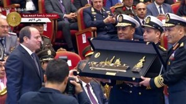 قائد القوات البحرية يقدم "درع الفرقاطة المصرية الجديدة" للرئيس السيسي