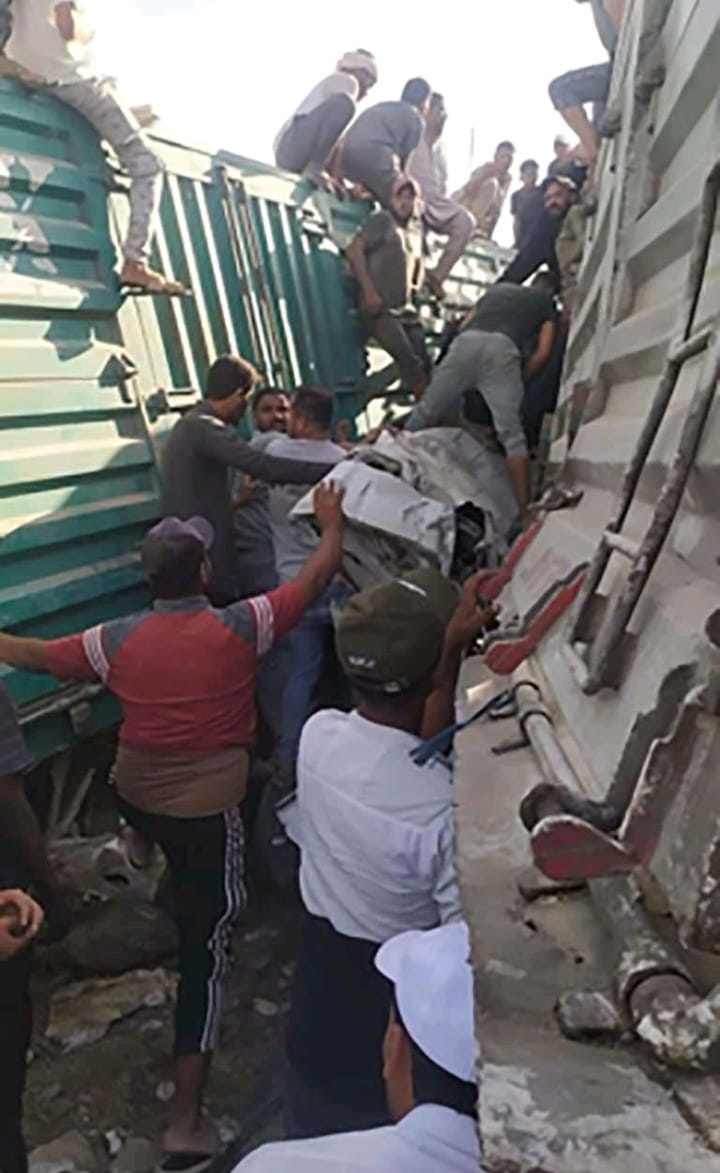 وتبين من الفحص تصادم قطار بسيارة نقل ثقيل بمقطورة رقم "ن ق د 2674" وملاكي رقم " س ن م 8619 "،وتم اتخاذ الإجراءات اللازمة حيال الواقعة.