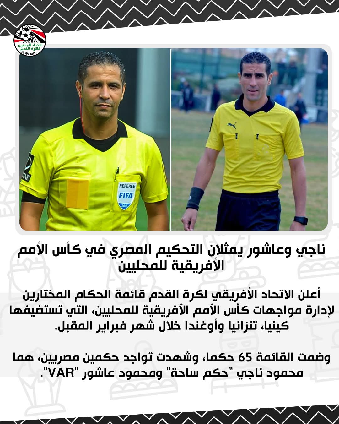 ناجي وعاشور يمثلان التحكيم المصري في كأس الأمم الأفريقية للمحليين