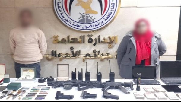 عقب تقنين الإجراءات، تم تحديد وضبط المتهمين داخل شقة مستأجرة بدائرة الجيزة، وعُثر بحوزتهما على كارنيهات مزورة، وبطاقات دفع إلكتروني، ودفاتر شيكات، وأجهزة لاسلكية ومسدسات لعبة.