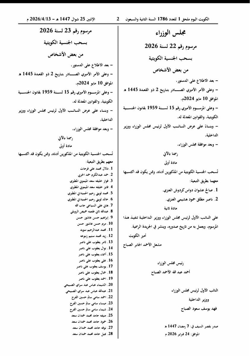 وتأتي هذه التعديلات في إطار إعادة تنظيم شاملة لقانون الجنسية الكويتي، مع إلغاء عدد من المواد السابقة وتحديث الإطار القانوني بما يتوافق مع التوجهات الجديدة للدولة في هذا الملف.