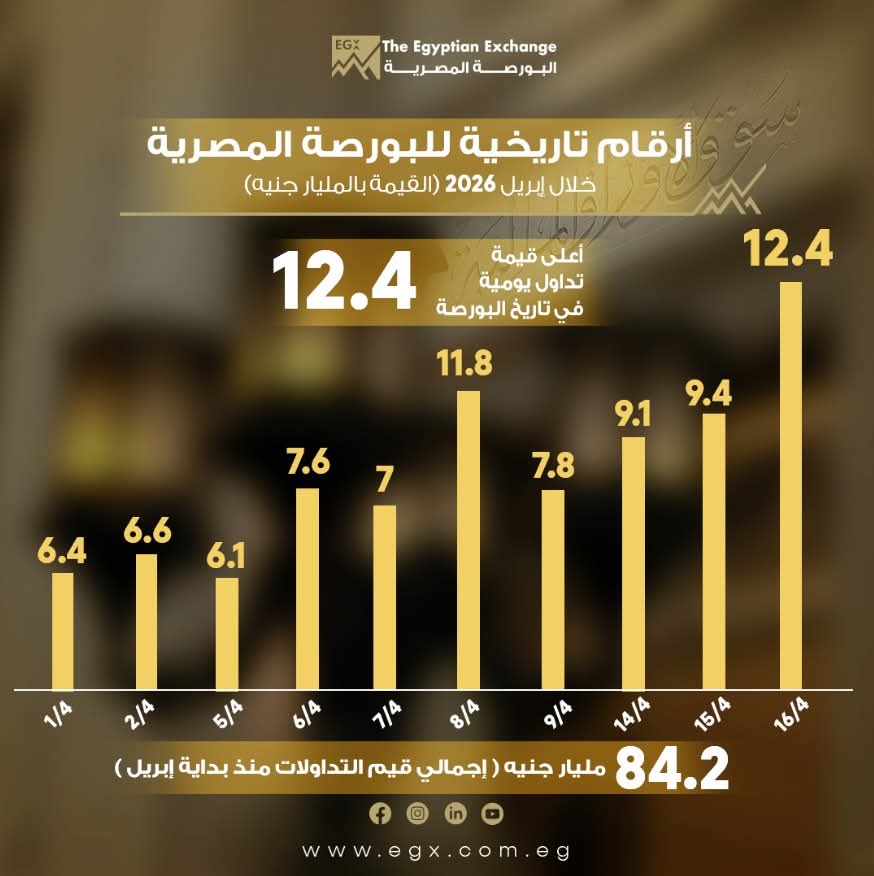 حققت البورصة المصرية أرقاما تاريخية خلال شهر أبريل 2026 وفقا لانفوجرافات أعدتها البورصة المصرية.