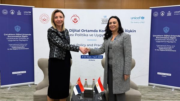 التقت الدكتورة مايا مرسي وزيرة التضامن الاجتماعي، السيدة تانجانا ماكورا وزيرة المساواة بين الجنسين والوقاية من العنف ضد النساء والتمكين الاقتصادي والسياسي للنساء بجمهورية صربيا، وذلك على هامش مشاركتها في اجتماع المائدة المستديرة حول "تبادل السياسات والممارسات الدولية بشأن حماية الطفل في البيئة الرقمية" بأنقرة، بحضور الأستاذة دينا الصيرفي مساعدة وزيرة التضامن الاجتماعي للتعاون الدولي والعلاقات والاتفاقات الدولية.
