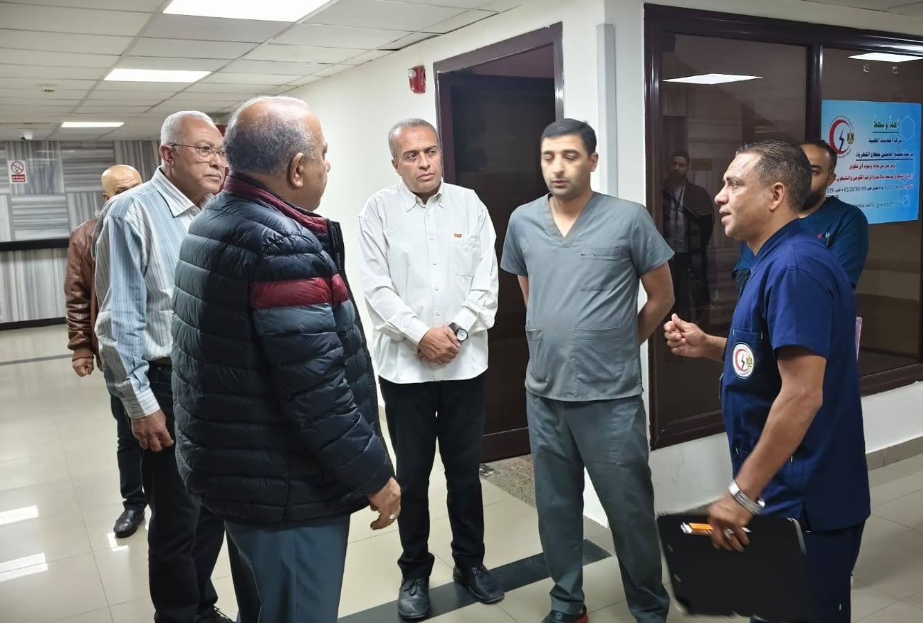 استهل الدكتور محمود عصمت، الزيارة المفاجئة، بمراجعة قائمة العمل في جميع الأقسام على مدار اليوم السبت للاطمئنان على انتظام تقديم الخدمة خلال أيام الإجازات والعطلات الرسمية، وتفقد الدكتور عصمت، الأقسام والعيادات المختلفة بالمستشفى بداية من قسم الاستقبال والطوارئ، وأدار حوارا مع المرضى لمعرفة انطباعاتهم ومدى الرضاء حول جودة الخدمة، وإضافة خدمات وتخصصات جديدة وتكثيف العمل في بعض العيادات، وتمت مراجعة الحالات ووجود قوائم انتظار من عدمه، ومجريات العمل وآليات التيسير على العاملين وتقليل أوقات الانتظار داخل العيادات، وكذلك ضوابط صرف الأدوية، ونظام عمل صيدليات الأقسام الداخلية، وتابع الدكتور عصمت خطوات التعامل مع استقبال حالة طوارئ للاشتباه في حالة "زائدة "منذ الإبلاغ عن استقبالها مرورًا بالكشف والتحويل واستدعاء الطبيب المختص وصولا إلى اتخاذ القرار الطبي المناسب، والذى تبين أنها لا تستدعي إجراء جراحة، وشملت الجولة تفقد أماكن انتظار المرضى والتأكد من توافر سبل العناية والاهتمام بهم
